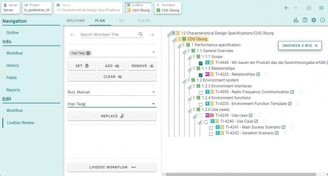 LiveDoc-Review ohne Kompromisse: Unser LiveDoc-Review-Tool ermöglicht es Ihnen, einzelne Workitems gezielt Reviewern zuzuordnen. Planen, durchführen und abschließen – all das wird so einfach wie nie zuvor. Sparen Sie wertvolle Zeit und Ressourcen, indem Sie Ihre Reviewprozesse optimieren.